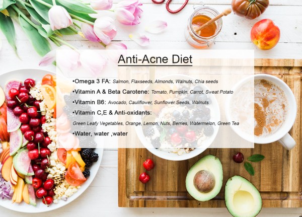 Diet that helps reducing acne and it’s complication, such as post acne marks and acne scar.