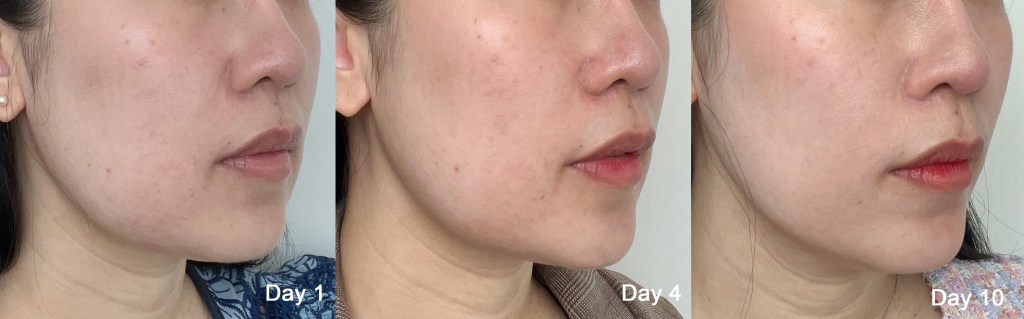 The treatment was surprisingly bearable, with just a little discomfort here and there. As for recovery, I was relieved to find that I had minimal downtime. When I woke up the next day, there were only some redness and swelling over my face but it faded quickly within that week. The downtime didn’t affect my daily activities as I could still go to work with my mask on.